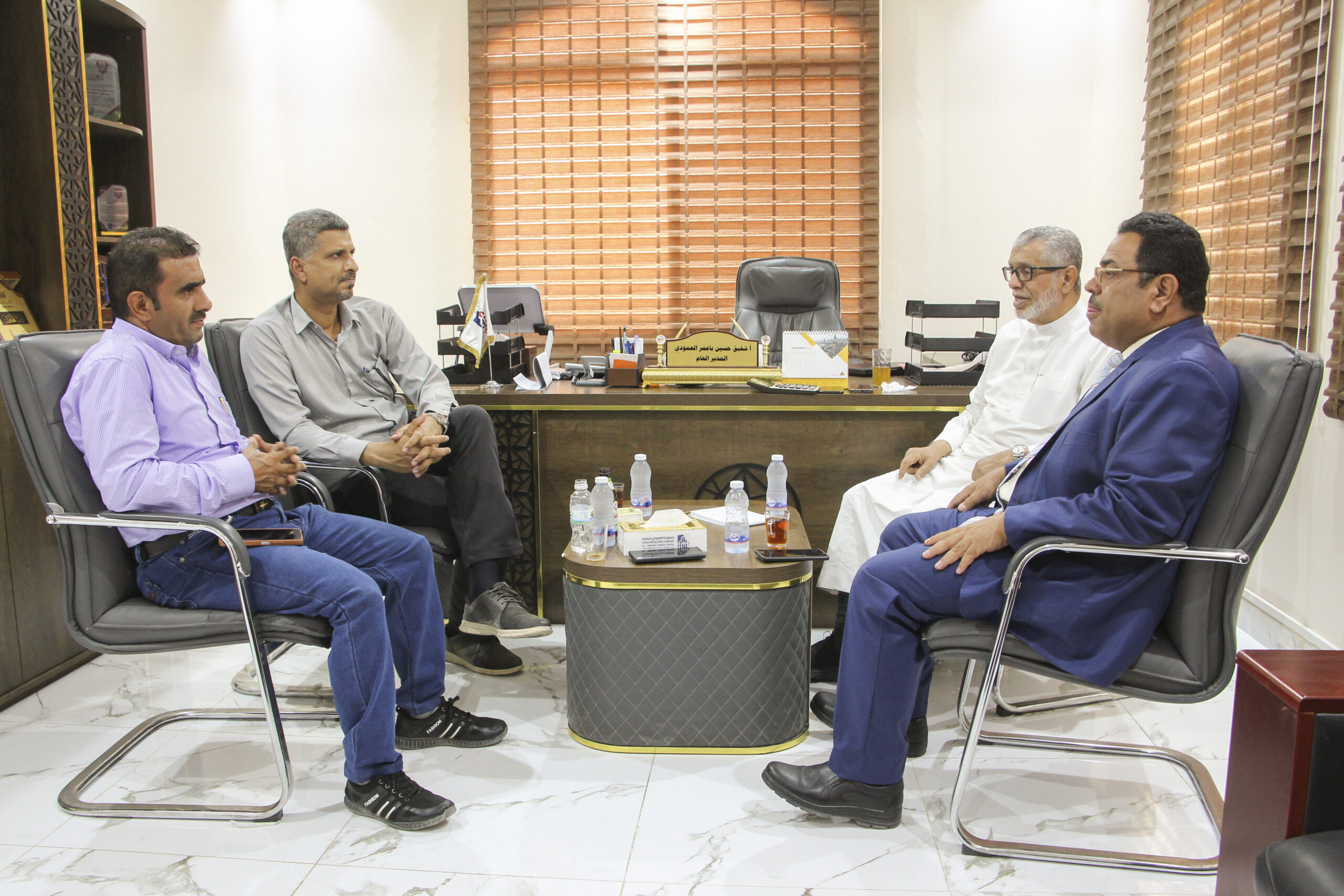 The General Manager of the Yemeni Al-Amoudi Group for Contracting and Trading Ltd., Mr. Shafiq Hussein Al-Amoudi, met with the Director of the Police College in Hadhramaut, Brigadier General Dr. Saleh Abdul bin Nasser Al-Tamimi. In the meeting, which was attended by the Chairman of the Board of Directors of the Yemeni Al-Amoudi Group for Contracting and Trading Ltd., Sheikh Abdul Qader Saeed Al-Amoudi, the General Manager of the Al-Amoudi Group welcomed the Director of the Police College in Hadhramaut, appreciating the national efforts of the college administration to advance the educational process, which in turn supports and enhances the work of security institutions in Hadhramaut in particular and Yemen in general. He emphasized the support and sponsorship of the Al-Amoudi Group for Contracting and Trading for the programs and projects of the Police College in Hadhramaut to advance the nation. For his part, the Director of the Police College in Hadhramaut, Brigadier General Dr. Saleh Abdul bin Nasser Al-Tamimi, praised the Al-Amoudi Group’s community contributions in various humanitarian, health, scientific and youth fields, commending the Al-Amoudi Group’s adoption of financing and implementing the first Olympic swimming pool project of its kind in Hadhramaut to develop the infrastructure of the Police College in Hadhramaut and enhance the sports and training programs for its students, expressing his thanks and appreciation for the efforts made by the Al-Amoudi Group to advance the nation. The meeting was attended by Engineer Sadiq Ahmed Yawz, Project Manager at Al-Amoudi Yemeni Contracting and Trading Group Limited.